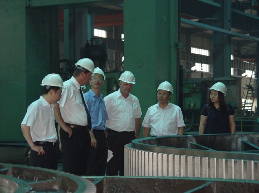 德国洪堡公司总裁Jouni OlaT10i Saio、副总裁Richard Thomas Cusick、亚太地区副总裁朱忆真、中航国际北京公司总经理助理廖红兵一行在公司董事长朱文清的陪同下参观了公司各个生产车间、科室,认真听取了公司董事长朱文清对公司五十多年成长历史及近十年公司的快速发展的介绍。德国洪堡公司总裁Jouni Olari Saio一行对公司配置的现代重型数控设备、完善的质量管理体系、繁忙的生产景象产生浓厚的兴趣。双方就市场开拓、产品制造等方面进行了坦诚的交流和沟通,为双方的合作迈出了重要的一步。