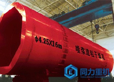 喷浆造粒干燥机工作原理熔融液体在高压泵的作用下进入特殊设计的雾化喷头,被雾化成细小的液滴,并与回转圆筒内的细小颗粒晶核相接触,液滴粘附在晶核表面在高温干燥介质的作用下,迅速完成热质交换过程,颗粒增大,增大后的颗粒被筛分,细小的颗粒返回作为晶核;也有部分成为粉状物料,也被返回作为晶核.